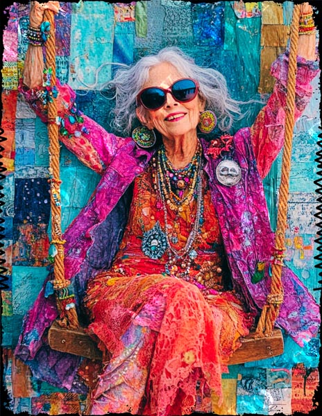 Whimsical Colourful Old Lady 002